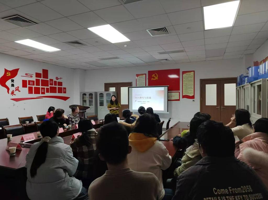 2025年1月3日,在第二附属医院检验科会议室,科主任葛晓军简要汇报了二附院检验科一年来的临床教学工作,到访老师与实习同学围绕学习、生活与就业意向等开展了深入细致的座谈交流,二附院教学副经理杨垒列席会议。何燕丽老师作《简历撰写与投递》就业指导培训。