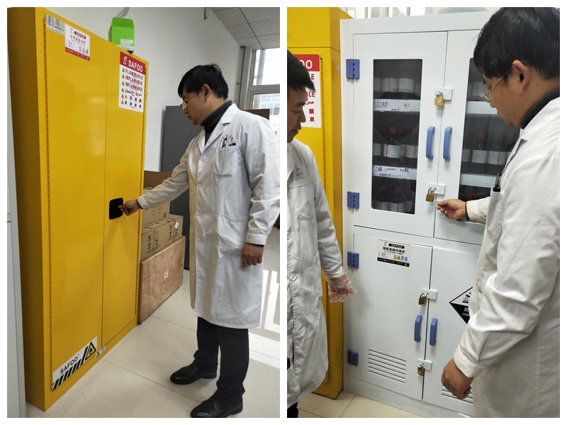 实验室药品试剂柜检查——规范放置    库房药品试剂柜补充新锁(填补试剂存放漏洞)
