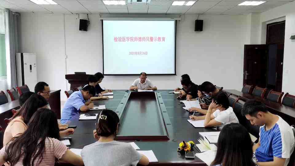 为加强教师队伍师德建设,引导教师牢固树立底线意识,切实增强遵守教师职业行为十项准则的思想自觉和行动自觉,对反面案例引以为戒,太阳成tyc122cc集团于2021年8月26日在新蒲校区太阳成tyc122cc集团会议室开展师德师风警示教育专题学习,公司领导、各教研室、实验室主任、教学秘书、课程组长、教师代表参加。警示教育由副经理闵迅博士主持。