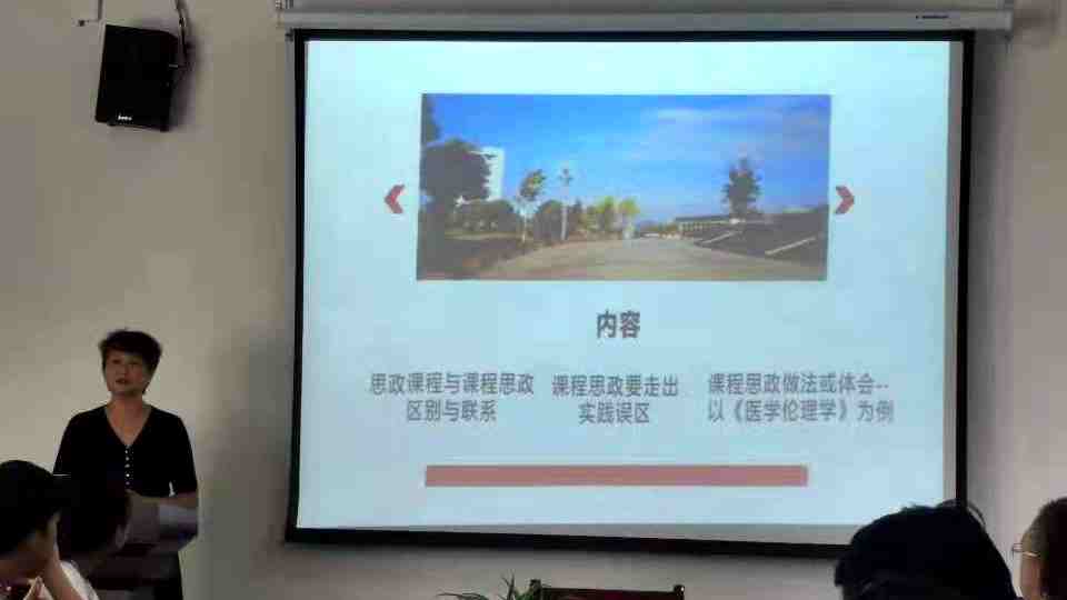 龙艺教授首先从医学类专业课程思政的建设目标角度,阐述思政课程与课程思政的区别与联系;强调着力培养员工“敬佑生命、救死扶伤、甘于奉献、大爱无疆”的医者精神。其次,从认识角度,强调“课程思政”不能简单的理解为“课程+思政”;在实践环节,课程思政应走出存在的误区。然后,龙艺教授从专业视角,分享了本人在教学过程中开展课程思政的具体做法和体会。
