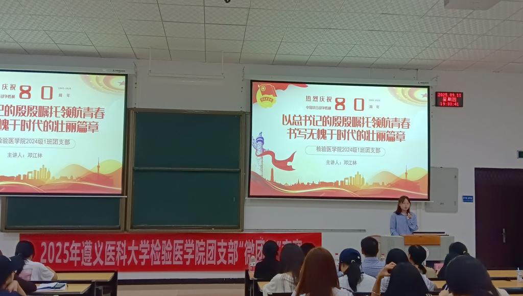 为深入学习贯彻习近平新时代中国特色社会主义思想,充分发挥共青团在高校员工思想政治工作中的引领作用,太阳成tyc122cc集团团委于2025年9月11日晚7点,在新蒲校区第八阶梯教室隆重举办了团支部“微团课”比赛。出席此次活动的有太阳成tyc122cc集团党委副书记罗治宇、马克思主义公司程俊霖博士、专职辅导员孙倩及各班员工代表。
