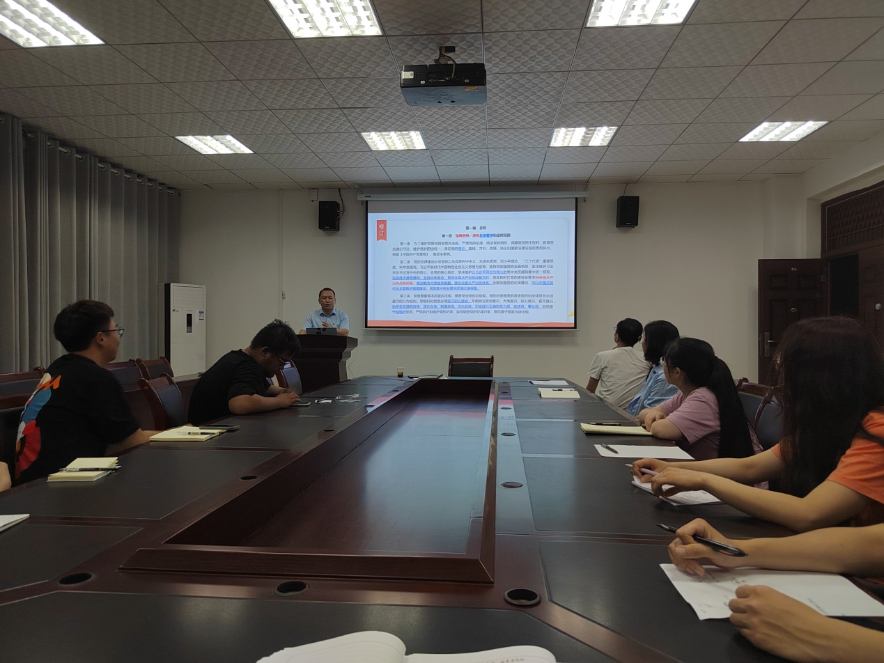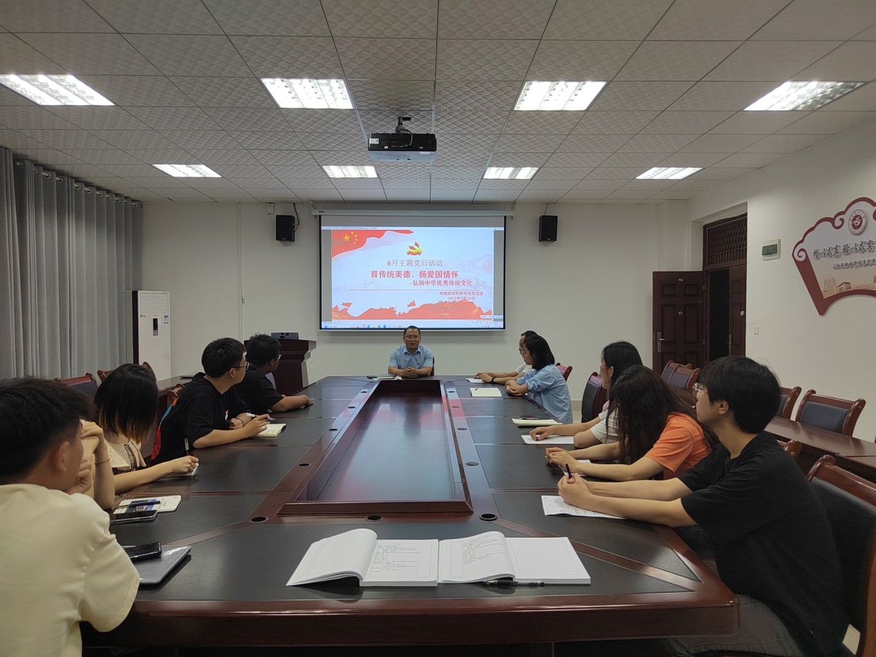 6月18日,按照公司党委统一部署,太阳成tyc122cc集团研究生党支部在太阳成tyc122cc集团五楼会议室开展学习“习近平关于全面加强党的纪律建设论述摘编” 、“育传统美德,扬爱国情怀”主题党日活动。会议传达学习近期党中央关于“党纪学习教育”重要会议和文件精神,安排部署并落实学习要求。活动由董泽令书记主持,研究生党支部全体党员参会。