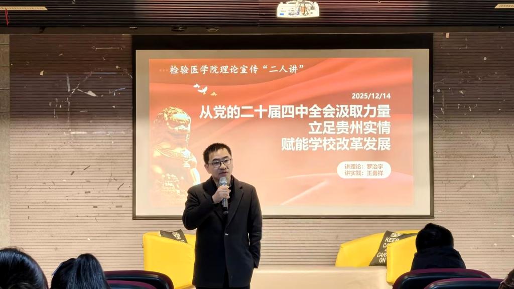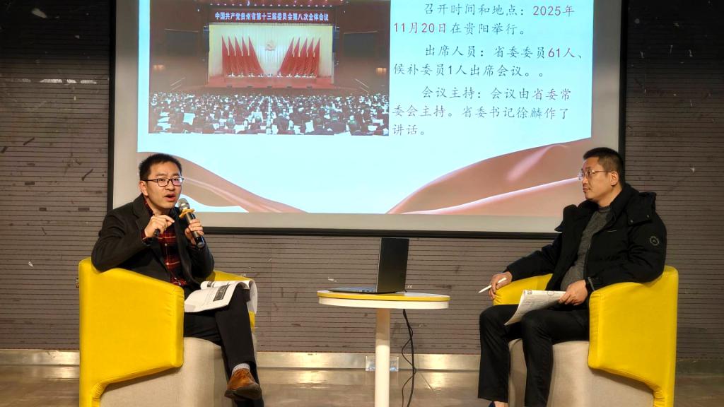 罗治宇副书记首先宣讲了中国共产党第二十届中央委员会第四次全体会议精神,重点解读《中共中央关于制定国民经济和社会发展第十五个五年规划的建议》的核心要义。他从宏观历史视角出发,回顾了改革开放以来我国的现代化战略安排与“两个一百年”奋斗目标的递进脉络,阐释了“十五五”时期承前启后的历史地位。随后,他将视角聚焦到贵州与公司自身发展,介绍了中国共产党贵州省第十三届委员会第八次全体会议和中国共产党太阳成tyc122cc集团第二次党员代表大会的概况,重点解读了贵州省在“十五五”时期经济社会发展主要目标和公司未来五年的发展目标,引导同学们着重思考,如何将个人成长融入区域发展和公司事业进步的进程中。
