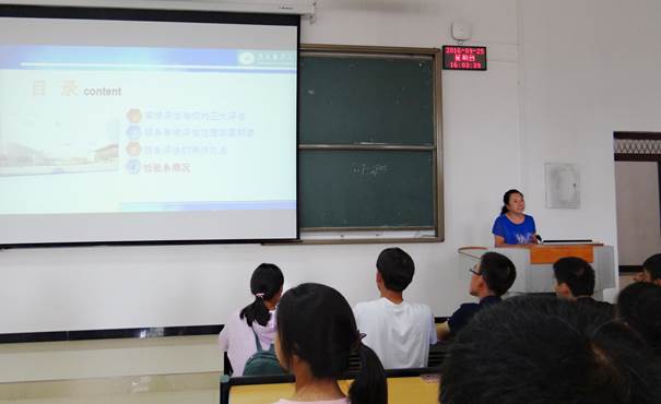 为了让同学们更加了解本科教学审核评估的内容,提高同学们对本科教学审核评估考核的应对能力。遵义医公司医学检验系(新蒲校区)全体同学于2016年9月25日下午四点在阶梯教室三阶开展了“医学检验系本科教学审核评估培训学习”讲座。参与此次活动的人员有党总支书记罗开源、闵迅主任、陈泽慧老师、辅导员姚梦莹老师以及医学检验系(新蒲校区)全体同学。