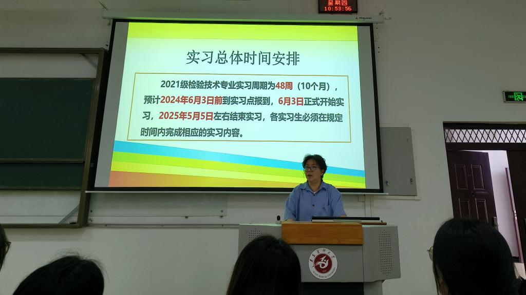 随后,蔡亮容老师就实习考核手册以及实习管理制度进行了宣讲,包括实习安排、实习考核、培训学习、请假制度等。希望同学们珍惜实习机会,认真对待实习工作,严格遵守实习纪律,服从实习安排,鼓励同学们积极参与临床实践操作,争取在实习期间取得优异成绩;同时,还强调了请假制度,要求同学们因病或特殊情况需要请假时,要按照规定程序办理请假手续,确保实习工作不受影响。