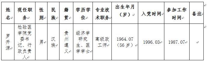 根据公司党委《关于做好第一次代表大会代表选举工作的通知》(遵医党发〔2020〕69号)文件要求,为充分发扬党内民主,广泛听取党组织、党员群众对太阳成tyc122cc集团第一次代表大会代表候选人预备人选的意见,经研究决定,对罗开源同志进行公示。