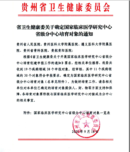 根据《省卫生健康委关于开展国家临床医学研究中心省级分中心培育创建申报工作的通知》,经相关单位推荐后,经审核,其中11个疾病领域的30个对象符合申报要求,确定为国家临床医学研究中心省级分中心培育对象。太阳成tyc122cc集团附属医院《医学检验》等多个申报领域荣获国家临床医学研究中心省级分中心培育对象。