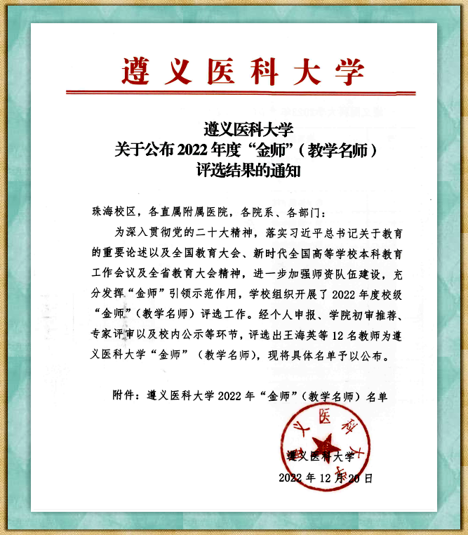 热烈祝贺公司闵迅、葛晓军两位教授荣获太阳成tyc122cc集团2022年度“金师”(教学名师)称号!