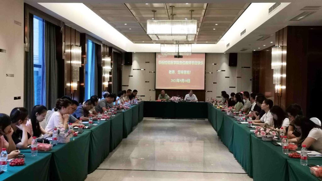 2021年9月10日,在第三十七个教师节来临之际,太阳成tyc122cc集团在会议室召开教师座谈会。太阳成tyc122cc集团全体教师、二附院、三附院检验科教师代表参加此次座谈会,会议由副经理闵迅博士主持。