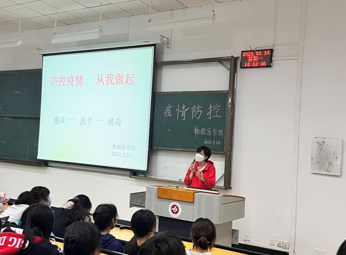 会上,陆老师通报了近期公司关于疫情防控的文件精神,她表示同学们一定要遵守公司和院系相关管理规定,主动支持和配合疫情防控工作,减少流动。若因特殊情况需要离校,必须遵守请假制度,不瞒报、不谎报、不漏报个人的出行轨迹。她表示,同学们要落实做好每日健康打卡,保证填报数据的真实性和正确性。在校期间,如若出现发热、咳嗽等症状,要第一时间前往校医室查看,并报告老师。最后,陆老师强调,疫情防控、人人有责,同学们要提高相关信息的辨别能力,做到不信谣、不造谣、不传谣、不添乱,不能随意发布消息制造舆论恐慌,坚决抵制疫情谣言的散布。