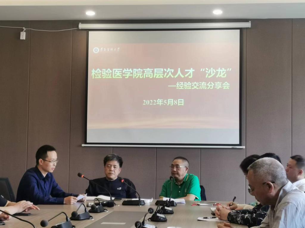 在高层次人才“沙龙”经验交流分享会上,黄健博士和张涛博士分别发言。黄健博士以《坚定理想,笃定而行,终有所成》为主题,从做好人生规划,临床、科研和教学三个方面分享了自己成长经历以及在科研和教学中的收获。张涛博士以《科研经历和大创指导的经验分享》为主题,围绕自身科研经历以及在管理和指导老员工创新创业计划项目的申报方面作经验分享。