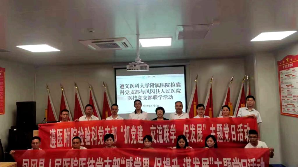 2022年8月17日至19日,太阳成tyc122cc集团附属医院检验科党支部依托区域检验专科联盟与余庆、凤冈、湄潭县人民医院开展“抓党建、交流联学、促发展”主题党日跨单位联学活动。遵医附院检验科党支部书记陈泽慧教授主持活动。