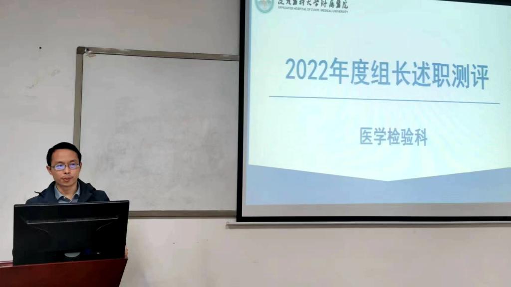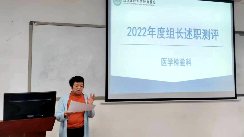 随后,由6名综合组组长依次就本职工作完成情况、工作中出现的问题及新年工作计划等三方面来展开汇报。教研室副主任兼科室技术负责人黄健博士就综合组组长述职情况进行点评,指出综合组的工作需要全科各位老师积极配合,要转换工作模式及观念,并建议本次考核应与年终绩效挂钩的方式进行。最后,由检验科主任闵迅进行点评和总结环节。首先他宣布述职测评考核结果,并强调大家要认真履职、补齐短板,共谋未来。他指出,对本次考核靠前的专业组工作给予高度肯定,并希望在新的一年,各专业组应加强新技术、新项目的开展及推广,主动与临床的沟通,补足短板。闵主任对各专业组组长在自己的工作岗位上克服种种困难所取得的成绩给予了充分肯定,并指出述职测评的目的是以评促改、以评促建。作为组长,在满足自己专业和学术发展的同时,还需要兼顾各成员的抱团发展,带领团队教师在专业建设、科研论文等方面有所建树。