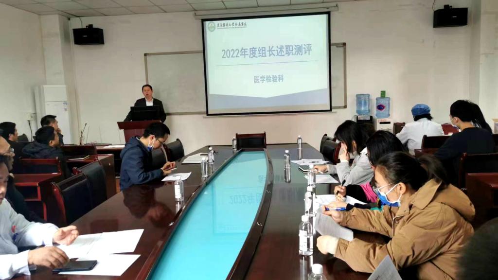 2023年3月21日下午3点,太阳成tyc122cc集团附属医院医学检验科在门诊六楼会议室召开2022年度各专业组和综合组组长年终考核述职。本次述职共遴选科主任、副主任及职工代表共25人作为评委,由15名各专业组和综合组组长以PPT形式进行汇报。会议由医学检验科主任闵迅博士主持。