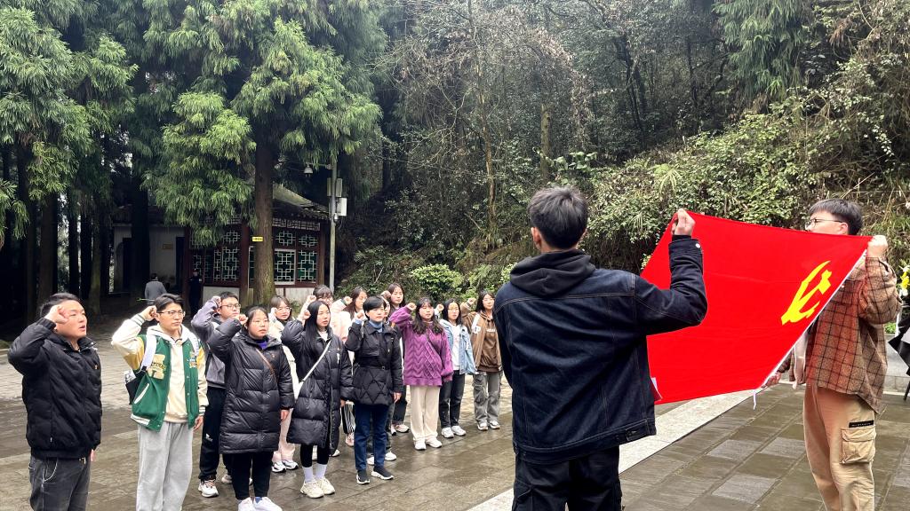 全体党员一行步行至娄山关遗址纪念碑前,由党支部副书记陆超带领,重温入党誓词。面对鲜红的党旗,党员们再次庄严地许下对党和人民的忠诚誓言,时刻牢记自己的党员身份。随后任前敏、蒙彩两名员工党员分别对娄山关遗址及娄山关战役背后的感人故事进行宣讲。