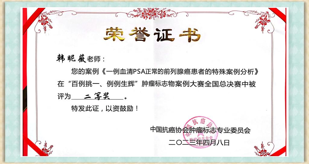 比赛环节,经赛前四大赛区选拔脱颖而出的十五名选手在本次总决赛中一决高下。每位参赛选手进行8分钟的现场案例解析,最终公司韩昵薇老师以《一例血清PSA正常的前列腺癌患者的特殊案例分析》在本次总决赛中荣获二等奖。(撰稿及摄影:韩昵薇 黄 健 一审:董泽令 二审:蔡亮容 三审:闵 迅)