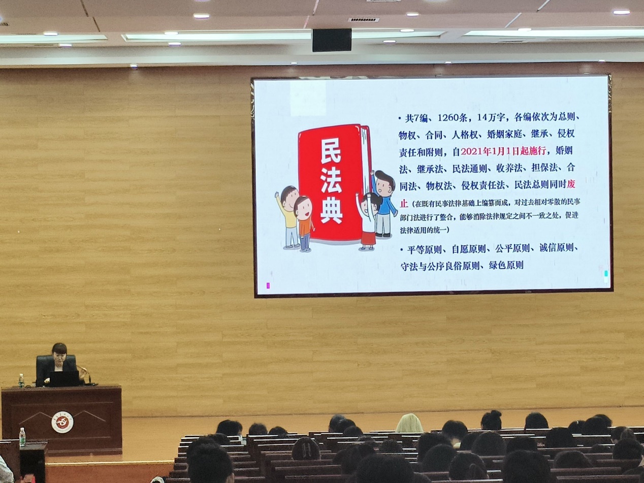 首先周光润书记作了题为“民法典 让生活更加美好”的主题宣讲,通过“认识民法典”、“宪法与民法共典”、“老员工与民法典”三个板块的讲解,教育引导员工深刻认识到民法典既是保护自身权益的法典,也是必须遵循的行为规范,青年员工要办事依法、遇事找法、解决问题用法、化解矛盾靠法,努力使尊法学法守法用法在全校蔚然成风。
