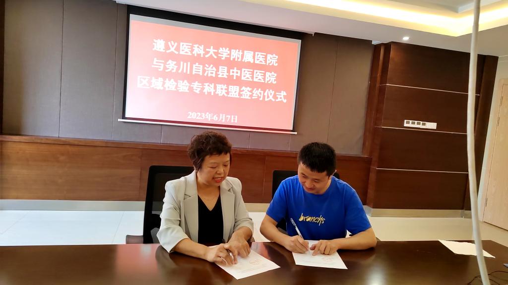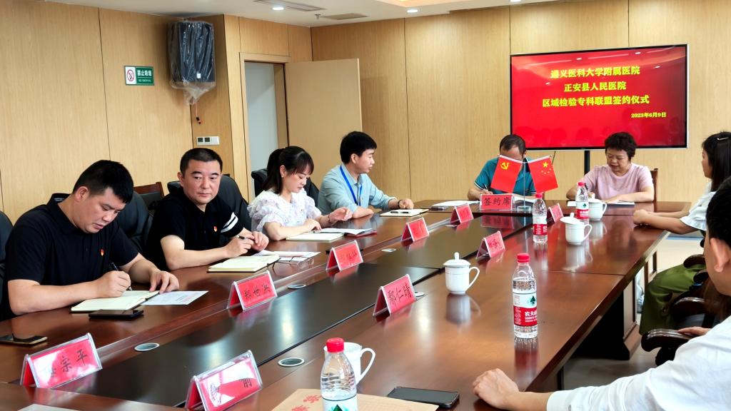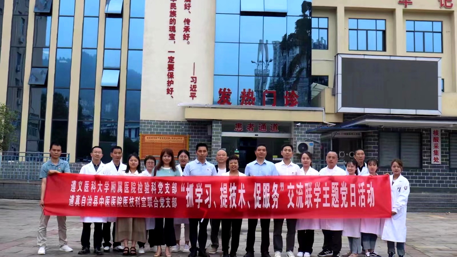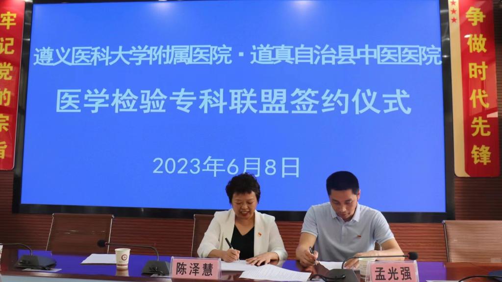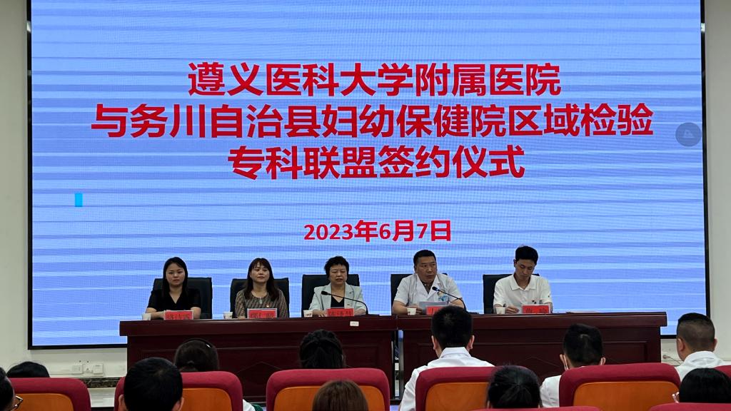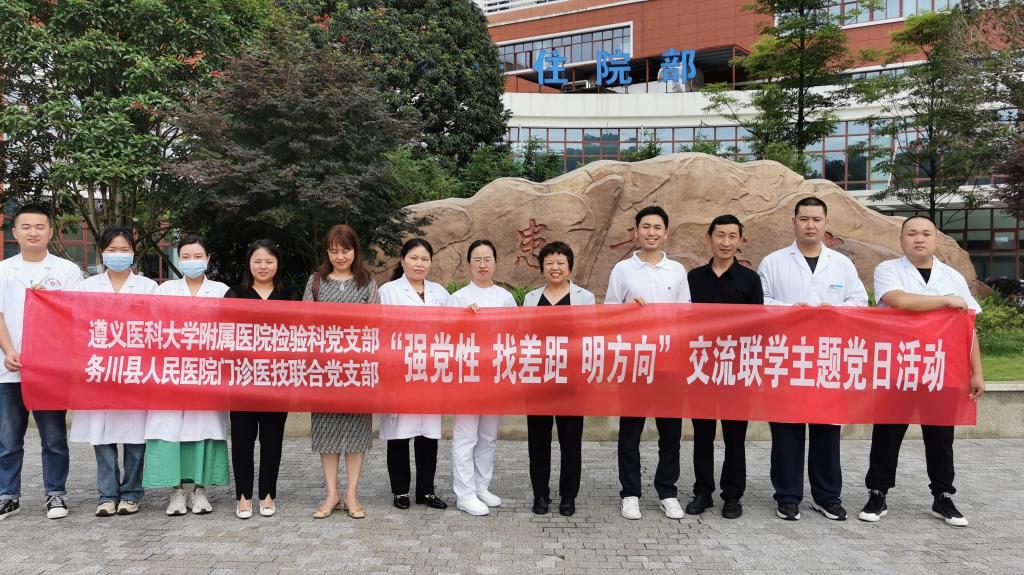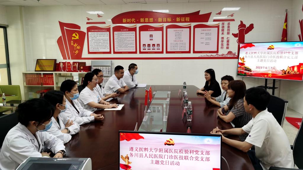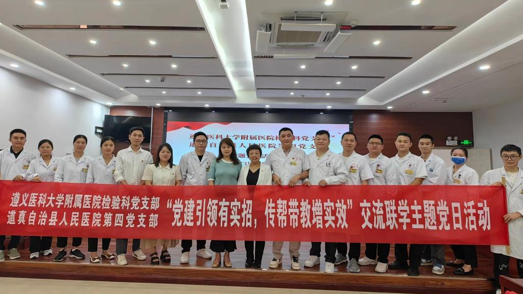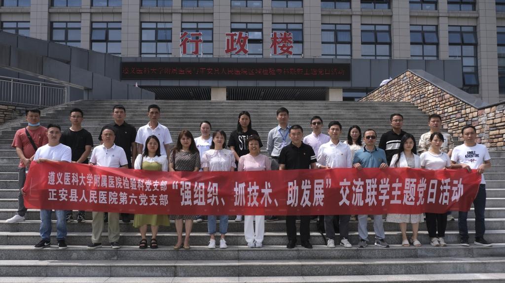 2023年6月7日至9日,太阳成tyc122cc集团附属医院检验科党支部赴务川、道真、正安县人民医院,中医院等七家区县级医院开展“抓党建、交流联学、促发展”主题党日活动。经检验科党支部认真策划、组建专家团队四人,由检验科党支部书记陈泽慧同志带队参加活动。活动内容以检验专科联盟签约仪式、集中授课及实验室交流等方式开展。