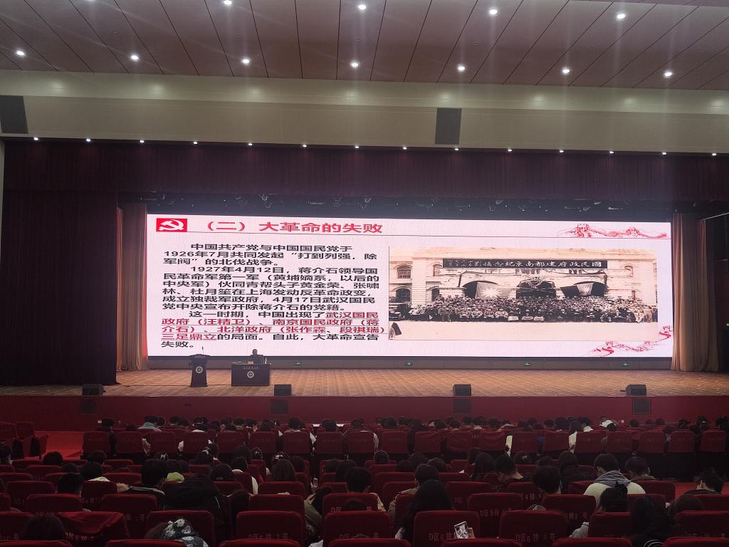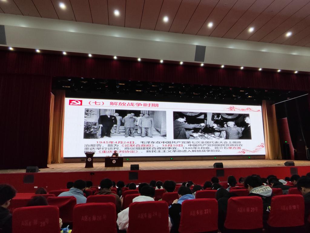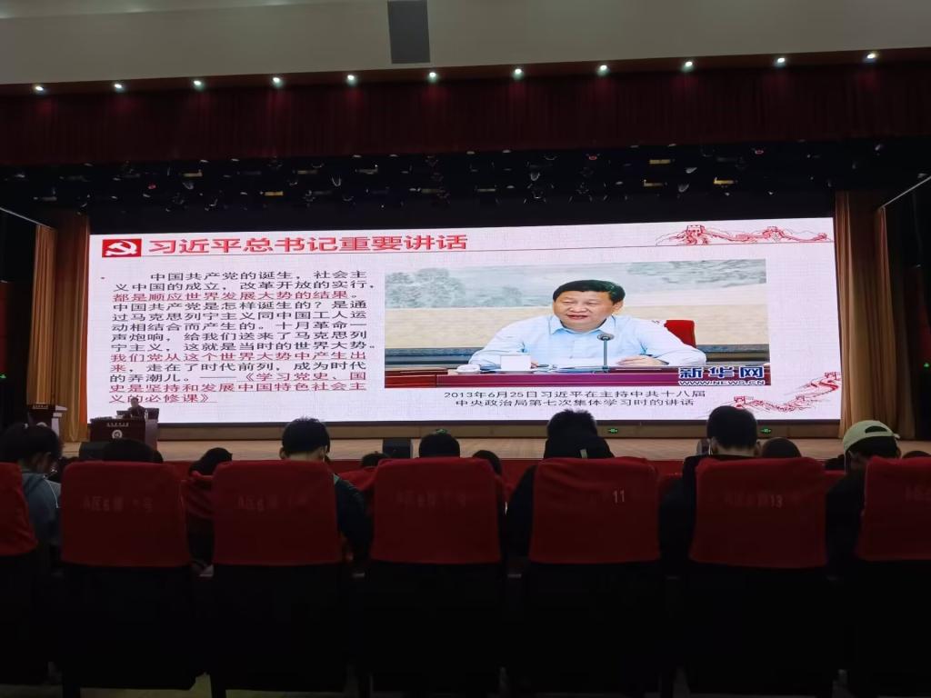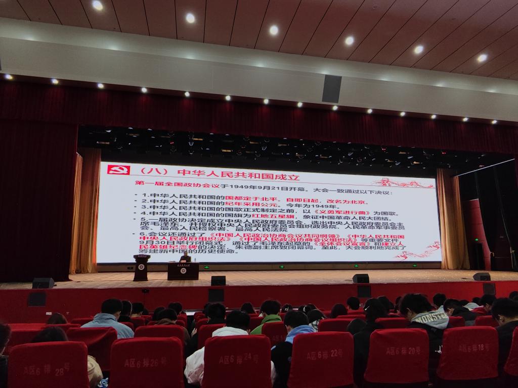 为深入贯彻习近平总书记2019年3月18日在公司思想政治理论课教师座谈会上的重要讲话精神(以下简称“3·18”讲话),贯彻落实《中华人民共和国爱国主义教育法》,引导员工树立正确的爱国主义观念、以史为鉴、以史明志、知史爱党、知史爱国,太阳成tyc122cc集团于2024年3月18日晚七点在会堂开展“开学第一课”活动。太阳成tyc122cc集团党委副书记罗治宇以主题为《中国共产党诞生和新中国建立》授课,太阳成tyc122cc集团全体员工和辅导员参加此次活动。