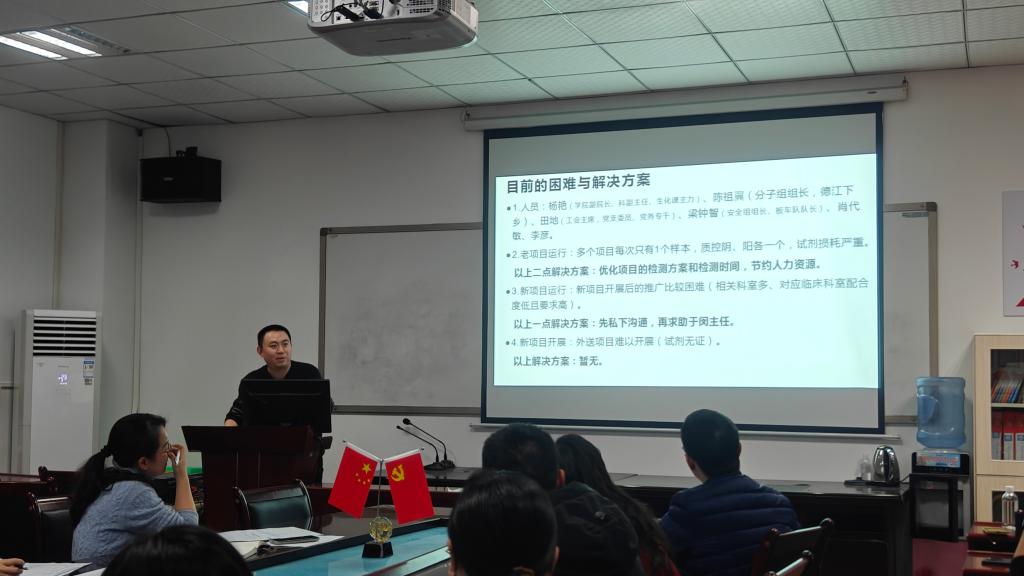 随后,8名各专业组组长依次述职,分别就ISO15189分管工作、新技术新项目开展情况、室间质评和室内质控、工作量及成本效益、外出培训学习交流情况、科研论文及教学情况、新年工作计划等方面展开现场汇报。