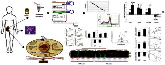 MicroRNAs (miRNAs) are endogenous gene expression regulators that are involved in renal function and physiopathology, making them potential biomarkers in the realm of transplantation. Sepideh Z. V. et al. evaluated urinary miRNA expression levels and assess their possible values in the prospective evaluation of renal allograft function. The expression levels of four miRNAs involved in renal fibrosis were quantified in urine cell pellets of 47 kidney recipients (with stable allograft function (SGF) and biopsy proven interstitial fibrosis and tubular atrophy; IFTA) and 15 healthy controls by real-time quantitative-PCR (RT-qPCR). The hierarchical clustering and receiver operating characteristic (ROC) analysis of miRNAs were performed in the study groups. Significant differences were observed in the urinary expression of miR-21 (P< 0.001), miR-142-3p (P< 0.001), and miR-200b (P< 0.001) between IFTA and controls. The hierarchical clustering of miRNA expression clustered most of the SGF and IFTA patients in separated groups. Estimated GFR was significantly correlated with urinary levels of miR-21 (r= 0.585,P= 0.003) and miR-200 (r= −0.447,P= 0.033). ROC analysis confirmed the ability of urinary miR-21 and miR-200b to discriminate the IFTA recipients with an area under the ROC curve of ≥ 0.81 (P< 0.001) and high sensitivity and specificity. Taken together, the findings indicated that the aberrant urinary miR-21 and miR-200b expression levels were accompanied with renal allograft dysfunction and IFTA. Therefore, they can be considered as potential diagnostic biomarkers for renal allograft monitoring.