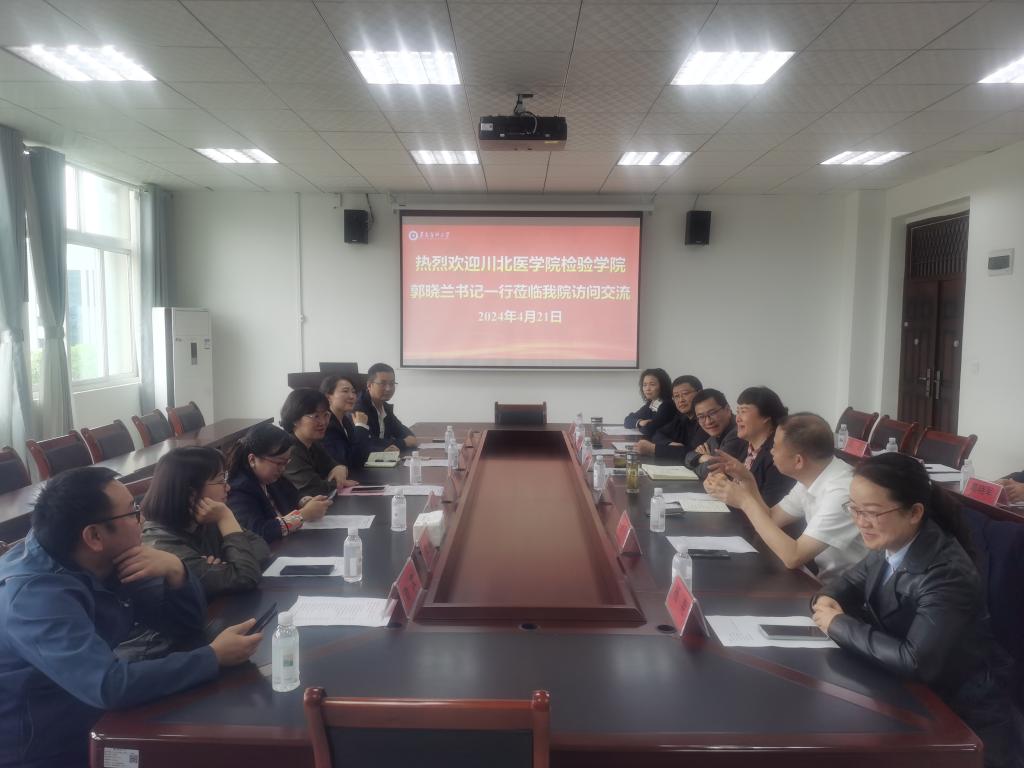 4月21日上午,继《全国高等医药院校医学检验技术专业第五轮规划教材》主编人会议暨编写会议在遵义胜利闭幕之际,参会的川北医公司太阳成tyc122cc集团党委书记郭晓兰一行来院交流座谈,太阳成tyc122cc集团班子成员、各相关科室负责人出席会议。会议由太阳成tyc122cc集团副经理闵迅博士主持。