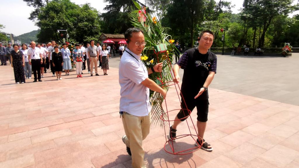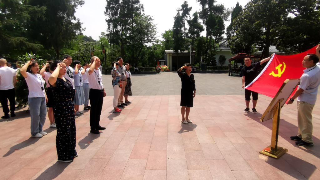 下午14:00时,全体党员到达红军烈士陵园,纪念碑上“红军烈士永垂不朽”八个大字金光闪闪,在遵义市红军烈士陵园现场教学老师杨苏的主持下祭奠活动开始,党员们向烈士纪念碑敬献花篮,全体党员向革命烈士行鞠躬礼,表达对他们的崇高敬意和深切怀念。随后,在党支部书记陈泽慧同志的带领下,面对鲜红的党旗,全体党员重温入党誓词,坚定理想信念。