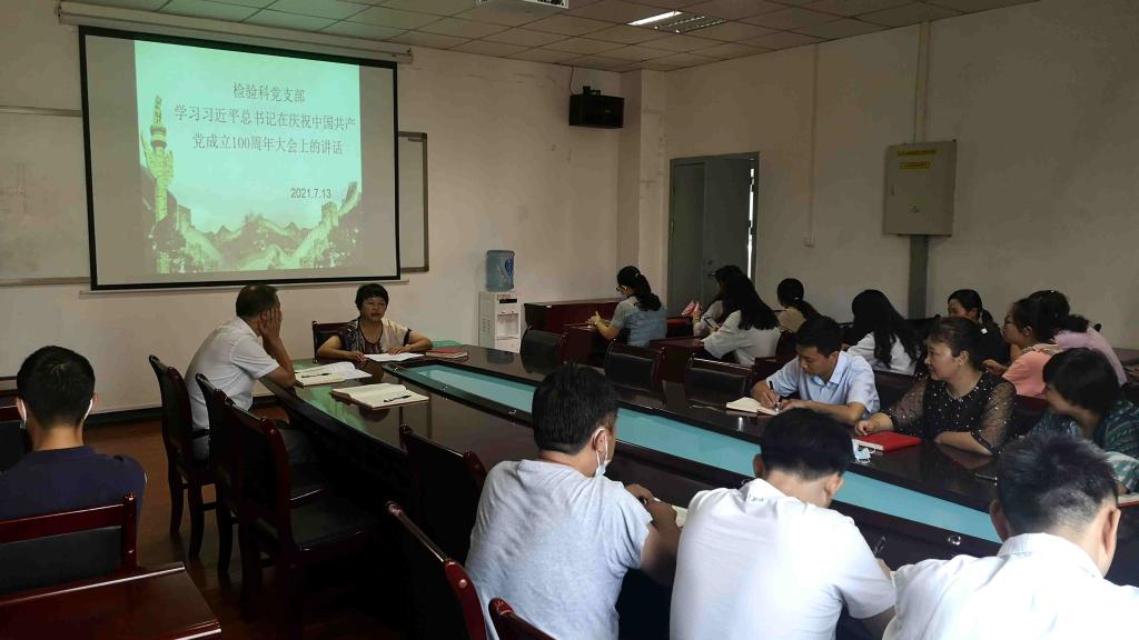 2021年7月13日上午,检验科党支部召开党员大会,专题深入学习贯彻习近平总书记在庆祝中国共产党成立100周年大会上的讲话精神。党支部书记陈泽慧领学并主持研讨。