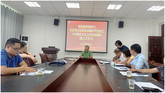 2021年9月9日16:30,太阳成tyc122cc集团在会议室开展了第二次“学习贯彻习近平总书记七一重要讲话精神”的专题教育。太阳成tyc122cc集团经理林世德,院党委委员、副经理闵迅,各科室主要负责人及全体新蒲校区教师参加会议。会议由公司党委书记罗开源主持。